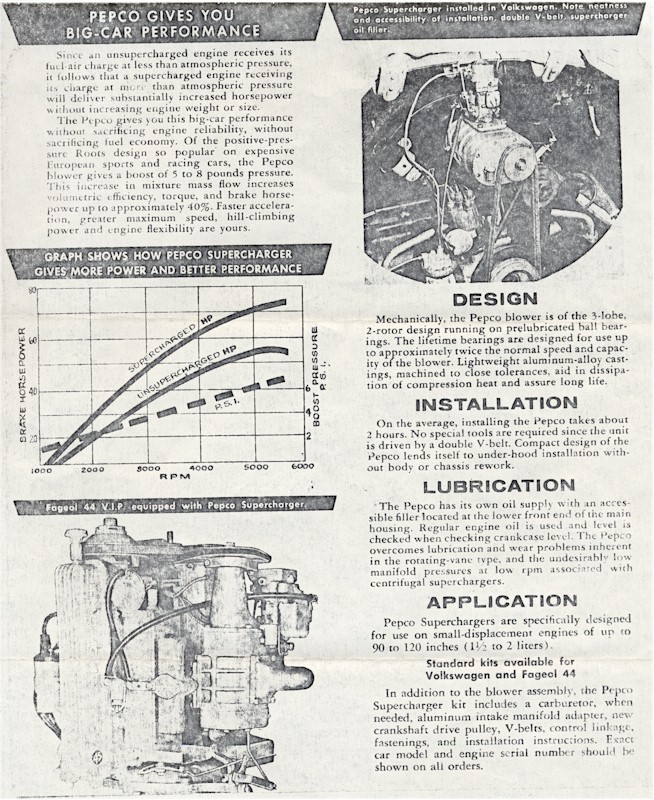 for Volkswagen and Crosley engines. These roots type blowers